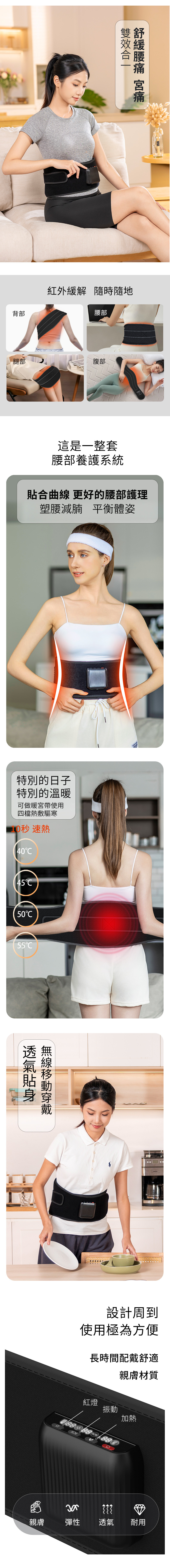 護腰、塑腰與暖宮同時進行,全方位呵護腰部健康。